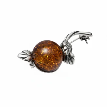 Prezentujemy biżuterię, która łączy w sobie ponadczasową klasykę z organicznym pięknem przyrody. Nasza srebrna broszka "Leśny Sekret" to propozycja dla kobiet ceniących sobie elegancję i unikatowe dodatki. Centralnym punktem kompozycji jest idealnie wypolerowany, kulisty bursztyn bałtycki, który zachwyca głębią koniakowej barwy i naturalnymi inkluzjami, lśniącymi w świetle.