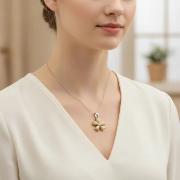 Biżuteria nie musi być duża, aby robić wielkie wrażenie. Ta srebrna zawieszka w kształcie kwiatuszka to kwintesencja delikatności i dziewczęcego uroku. Połączenie jasnego, pastelowego bursztynu z chłodnym srebrem tworzy kompozycję idealną na wiosnę i lato.