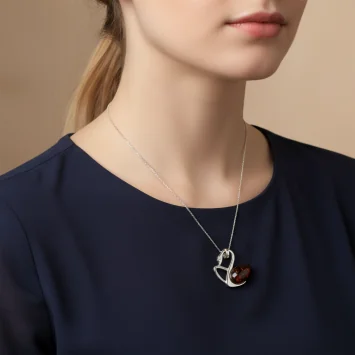 Elegancja i uczucie zaklęte w srebrze. Wyjątkowa zawieszka przedstawiająca dostojnego łabędzia. Jego korpus tworzy naturalny bursztyn bałtycki w głębokim odcieniu ciemnej wiśni, a szyja i skrzydło wykonane są z lśniącego srebra próby 925 z ozdobnym fakturowaniem. To ponadczasowy symbol miłości i wierności, idealny na wyjątkowy prezent.
