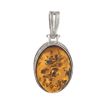 Oprawa wisiorka została wykonana z najwyższej jakości srebra próby 925. Aby nadać biżuterii wyrazistości i wydobyć detale zdobień, metal został poddany procesowi oksydowania. Dzięki temu srebrne elementy zyskały szlachetną, ciemniejszą barwę w zagłębieniach, co idealnie komponuje się z ciepłym odcieniem bursztynu, nadając całości luksusowy charakter vintage.