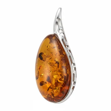 Wyjątkowość tego modelu podkreśla misterna oprawa. Srebro próby 925 zostało uformowane w ażurowy wzór, który delikatnie otula kamień, pozwalając światłu swobodnie przenikać przez strukturę bursztynu. Dzięki temu biżuteria mieni się i zmienia swoje oblicze w zależności od kąta padania promieni słonecznych. Polerowane wykończenie srebra gwarantuje trwały blask i odporność na czynniki zewnętrzne, podkreślając luksusowy charakter ozdoby.